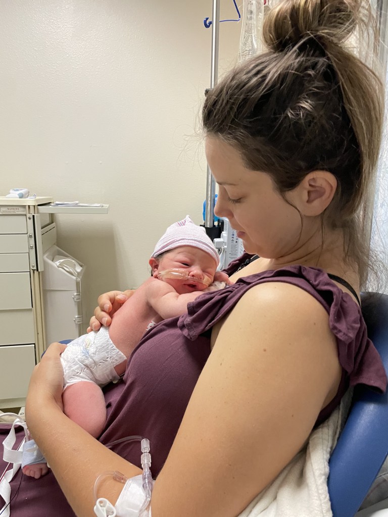 My body is confused why I would withhold the one thing that can make it feel better. I held her there as soon as I could after birth, as soon as we broke her out of the NICU, on the couch meeting her sisters, in her carrier getting ready in the bathroom, in my bed snuggling as the sun came up, on the ER bed when she stopped eating and finally after they cut the cords and I had sang to her as the last amount of life left her. I held her there. It’s where she belongs.